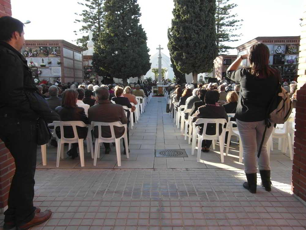 En torno a las 16:30h de la tarde comenzó la misa al aire libre en honor a los difuntos. A la ceremonia, presidida por gran parte de la Corporación Municipal, asistieron más de un centenar de vecinos, donde el recuerdo de los fallecidos estuvo presente durante todo el acto.