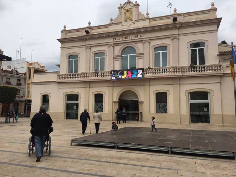 Para poder disfrutar de las actuaciones programadas, se ha instalado una tarima en la Plaça de l’Ajuntament sobre el que actuarán los diferentes artistas.