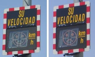 De manera que si un conductor supera los 40 kilómetros por hora en los tramos donde están situadas estas señales luminosas, el semáforo muestra su enfado con una cara de tristeza, mientras que si se circula por debajo de esa velocidad, el semáforo luce una simpática cara. Además, al pasar con el vehículo al lado de estas señales, la pantalla también indica la velocidad a la que se está circulando en ese momento.