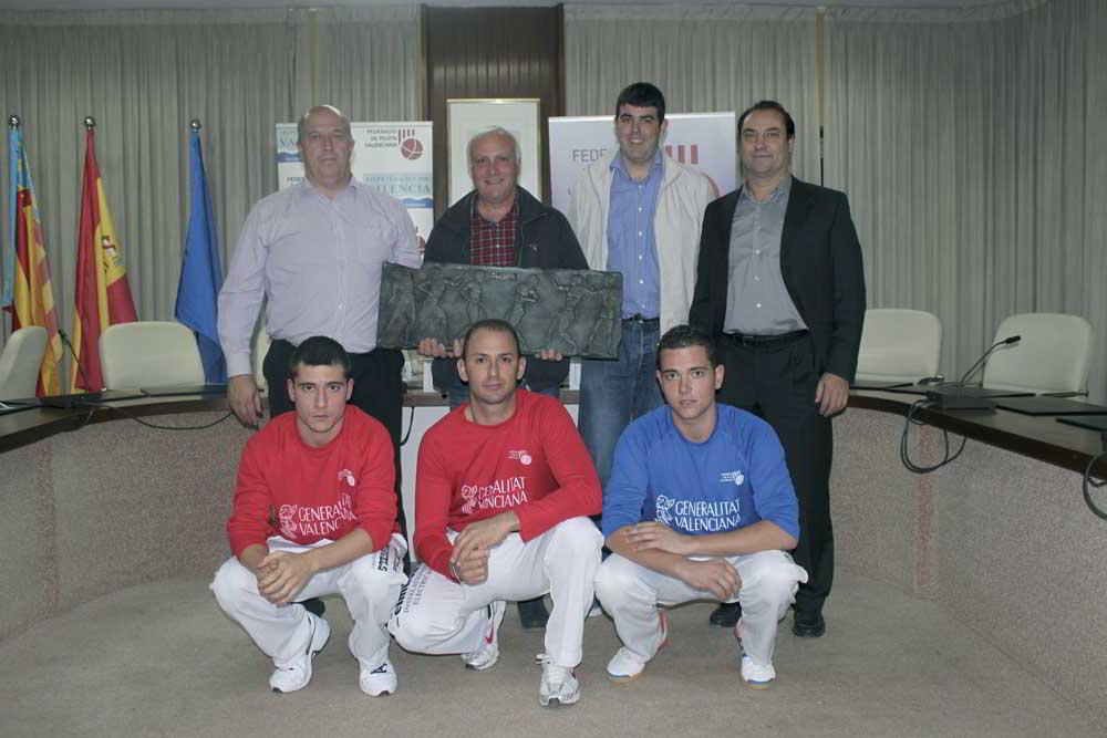 Adrián de Museros – presente también en el acto – y Pascual de La Pobla – quien no pudo asistir por motivos laborales – se enfrentarán en la pista a partir de las 11 horas del próximo domingo día 4. Esta es la cuarta final para Adrián y en todas ellas se ha medido contra Pascual. El Puig acogió la final del 2009 en la que el de Museros se impuso al de La Pobla, aunque en las dos siguientes – 2010 y 2011 – la victoria fue para Adrián, por lo que si consiguiera vencer durante la próxima jornada dominical, el pilotari de Museros completaría su tercer campeonato consecutivo y en consecuencia sería merecedor del Friso Griego en propiedad, un galardón que el ente federativo entrega a los campeones individuales de raspall profesional, escala i corda profesional y frontón valenciano si obtienen tres campeonatos consecutivos o cinco de manera alterna.